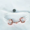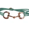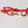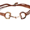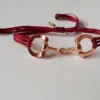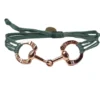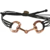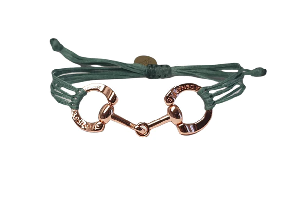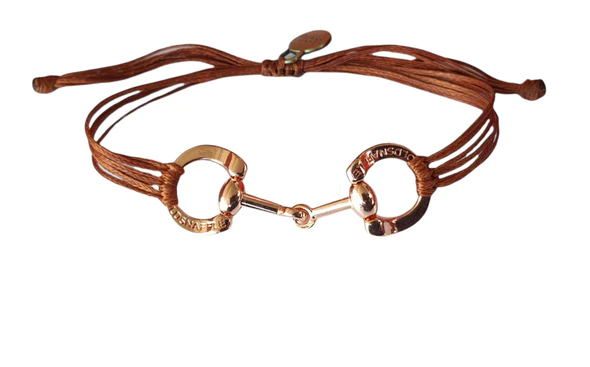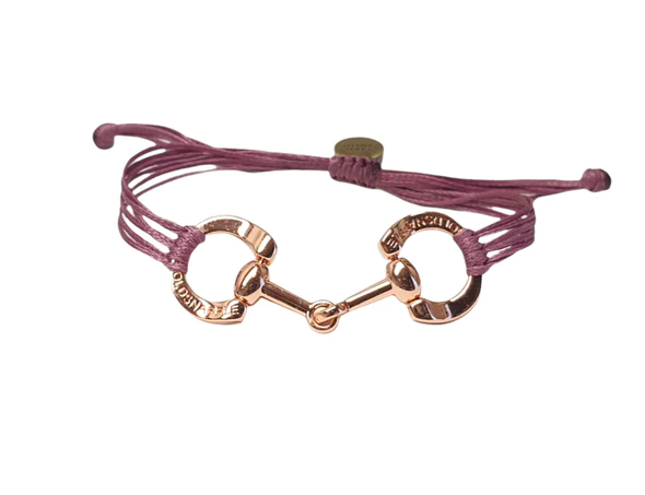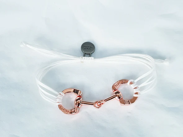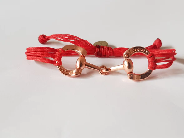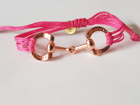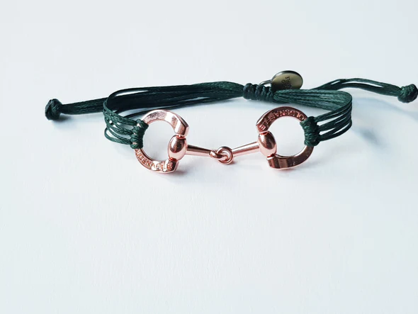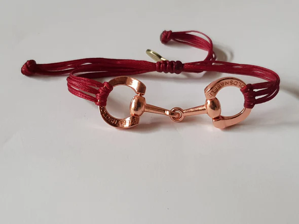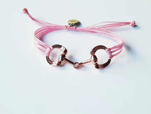 E’ realizzato con lo stesso filo utilizzato per cucire le selle e le briglie risultando incredibilmente resistente, ed il filetto decorativo Rose Goldย (realizzato in lega) viene trattato in superficie con una particolare resina naturale che impedisce allergie cutanee!