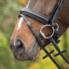 Briglia Sunset con capezzina in vernice e sovracapo anatomico extra largo per un comfort ottimale riducendo la pressione sulla nuca, mentre la morbida imbottitura ed il sottogola offrono un tocco di lusso in piรน. Il frontalino รจ decorato con strass e la chiusura del sottogola รจ regolabile su entrambi i lati.