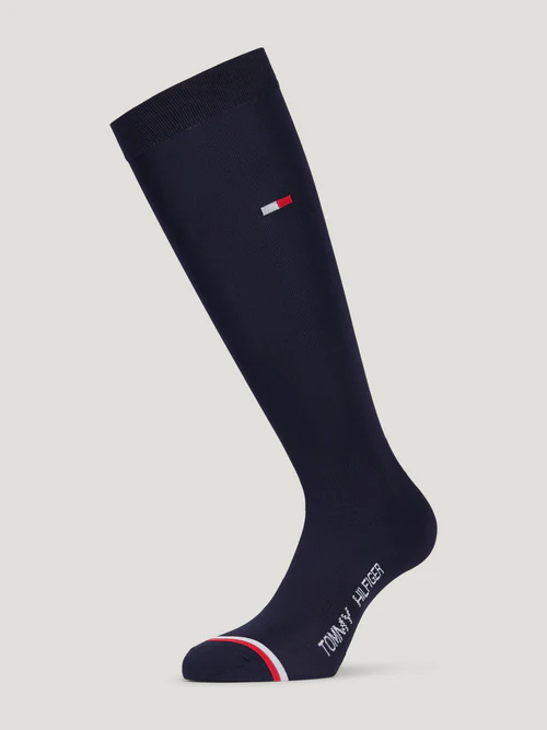 Calza a compressione di qualità con sezioni rinforzate per caviglia e piede, scritta Tommy Hilfiger sull’arco plantare, aree rinforzate.