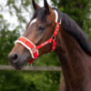 Capezzone da doma con tre anelli a D in metallo posizionati sopra la capezzina.