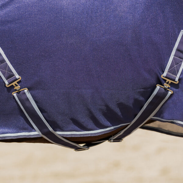 Coperta antimosche realizzata in maglia fine, offre protezione dalle mosche nelle giornate calde. Presenta un inserto in nylon nella parte anteriore per un maggiore comfort. La vestibilitร comoda assicura che la coperta rimanga in posizione. Grazie alla doppia chiusura con fibbia, ai rinforzi sulle spalle e al risvolto per la coda, il tuo cavallo mantiene la massima libertร di movimento. E’ rifinita con cinghie elastiche per le gambe e un cordino per la coda.