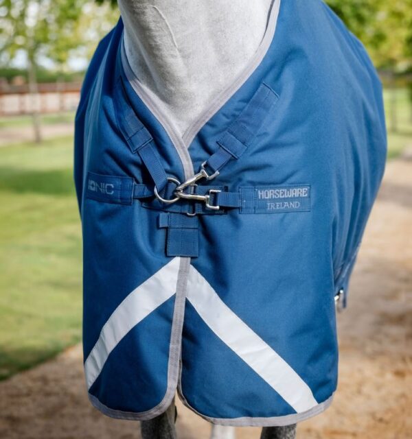 La coperta da paddock Horseware® Ionic® Therapy Turnout 100gr combina i vantaggi della tecnologia a infrarossi con la nostra eccezionale vestibilità e qualità per ottimizzare prestazioni e recupero. Il suo esterno impermeabile in poliestere 1200D è rivestito in tessuto ceramico che riflette il calore corporeo sotto forma di raggi infrarossi lontani.
