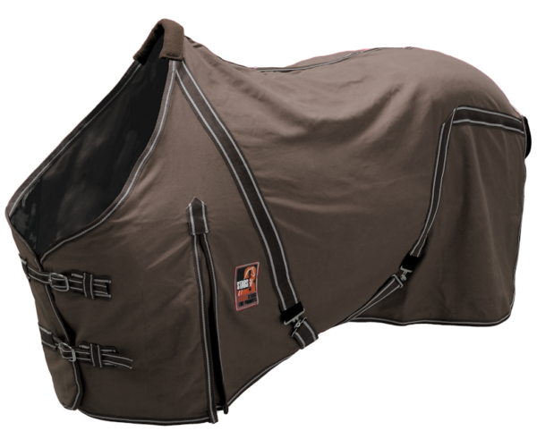 Coperta realizzata con l’interno in cotone e l’esterno in poliestere che consente di ottenere una coperta più resistente delle normali coperte in cotone. Coperta con spacchi laterali anteriori e completa di cinghie incrociate con elastici ricoperti. Fornita all’interno di una pratica borsa con chiusura a zip.