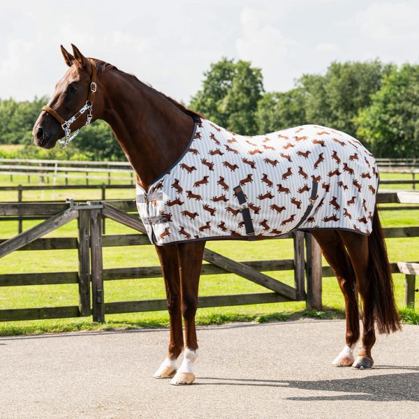 Questa coperta in pile della collezione Stable Buddy Dachshund è decorata con Bassotti e rifinita con un collo in tessuto a coste. La coperta ha una doppia chiusura frontale, cinghie incrociate e presenta il logo QHP.