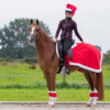 Coprireni natalizio bordato in pelliccia sintetica.