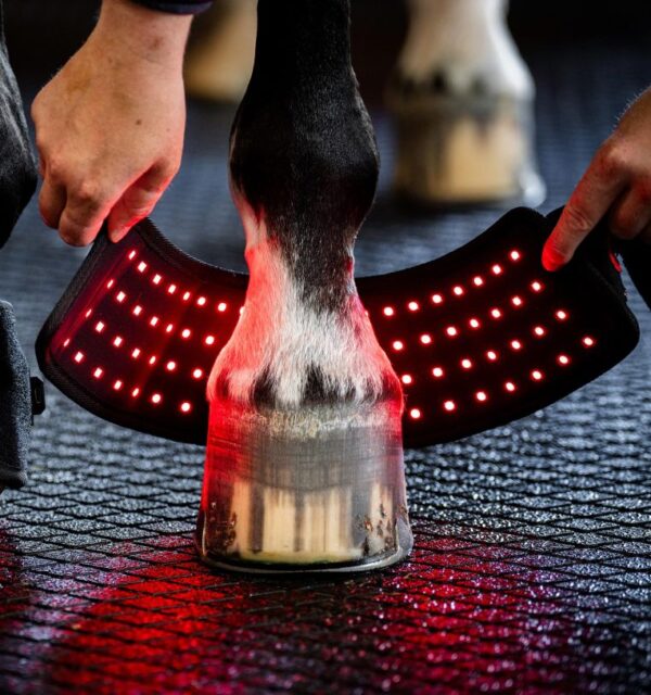 Il versatile dispositivo Horseware® LED Red Light Therapy Mini può essere utilizzato su più punti, inclusi zoccoli, pastorali, ginocchia e nodelli. 80 LED utilizzano una combinazione di diverse lunghezze d’onda luminose per agire sia sullo strato dermico che sui tessuti profondi. La luce rossa a 660 nm agisce sulla superficie, mentre la luce infrarossa a 850 nm penetra più in profondità per raggiungere i tessuti molli.