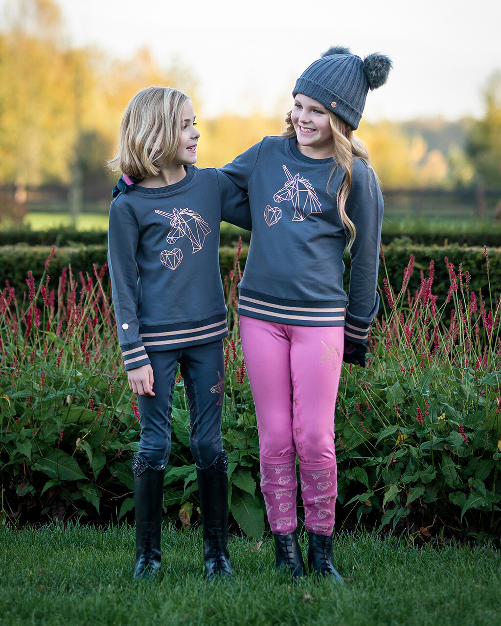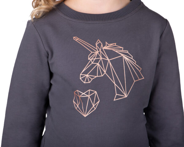 Stampa unicorno color oro rosa sul davanti.