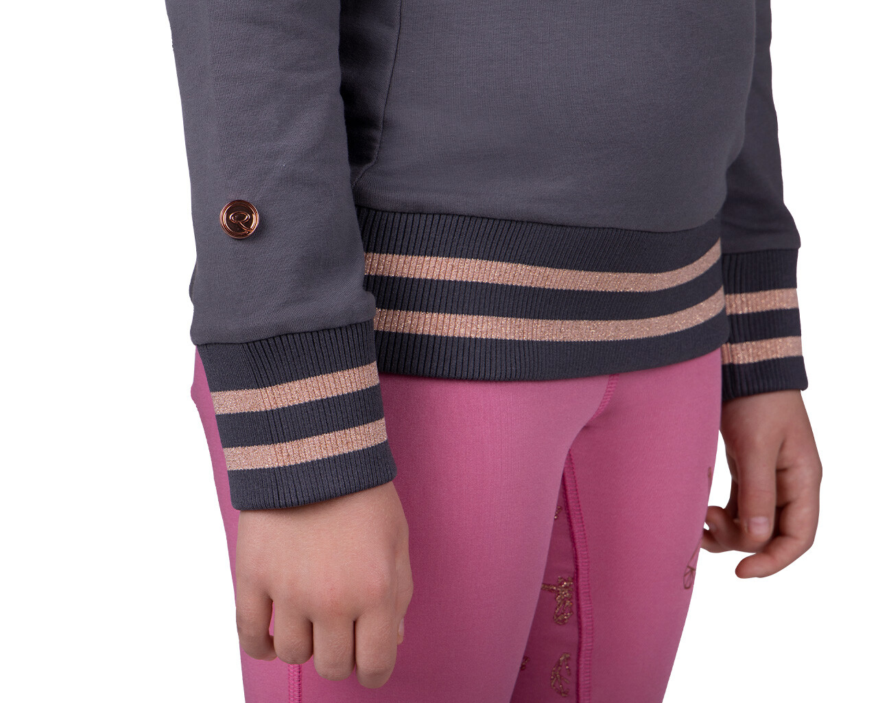 Proprio come i leggings Didy, la felpa ha strisce glitterate rosa in contrasto.