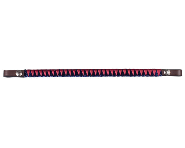 Frontalino in pelle dall’aspetto classico grazie al design con strisce di tessuto intrecciate.