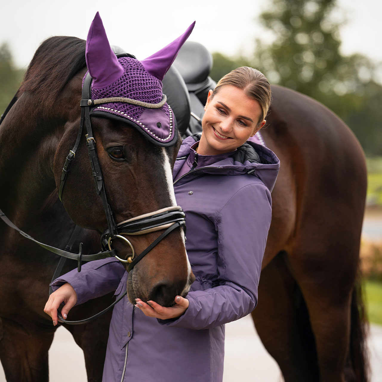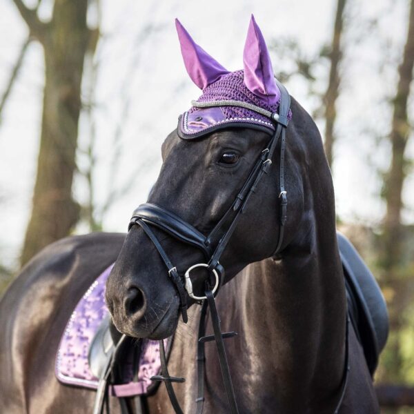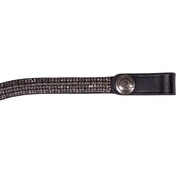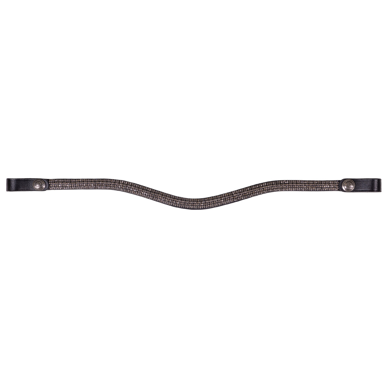 Frontalino Fayen in pelle con forma ad onda e decorato con strass argentati. Con automatici su entrambi i lati per sostituirlo in modo facile e veloce.
