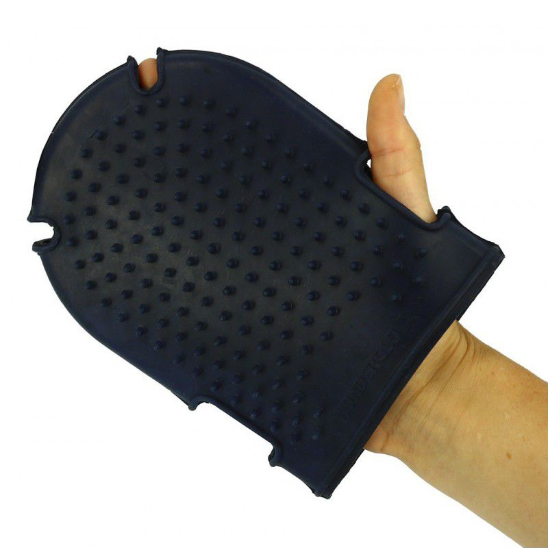 Guanto striglia in morbida gomma, setole in gomma, taglia unica. Colori assortiti.