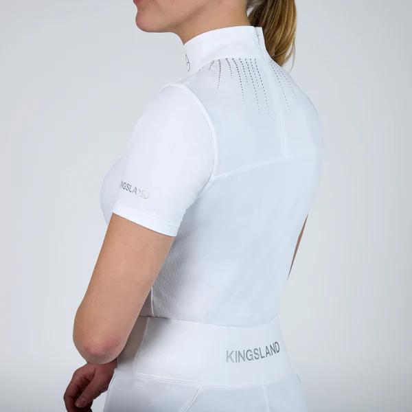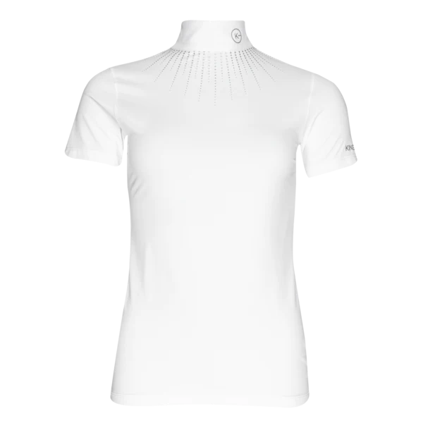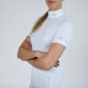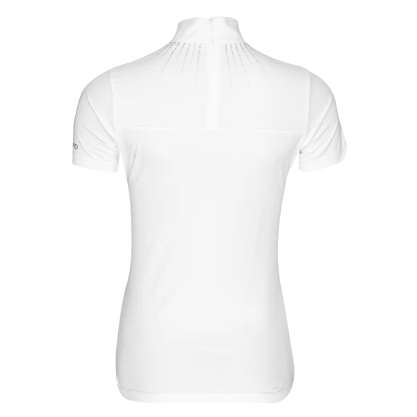 Maglia da gara traspirante progettata pensando all’equitazione competitiva. Presenta tutte le proprietà essenziali di cui hai bisogno dal tuo abbigliamento per concentrarti sulla tua performance. Oltre alle funzioni antibatteriche e l’asciugatura rapida, il materiale offre protezione UPF 30+, assorbendo o bloccando efficacemente i dannosi raggi UV per prevenire i danni del sole. E, ultimo ma non meno importante, il suo design ti farà sembrare splendida e professionale con il colletto bianco e la stampa argento glitterata sul davanti.