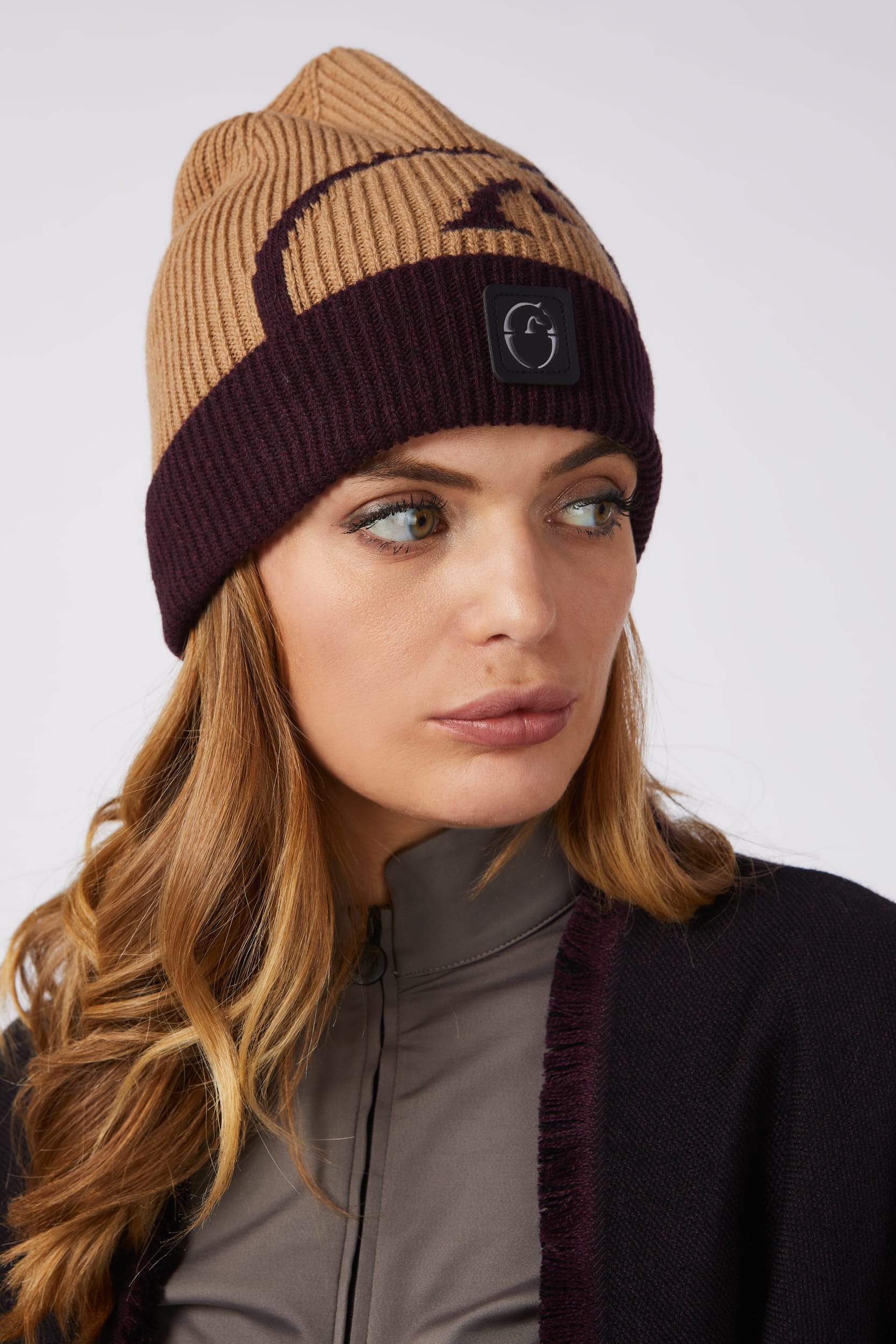 Cuffia invernale con banda a intarsio.