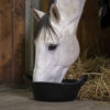 Mangiatoia da terra in gomma con manici, ideale per l’alimentazione dei cavalli.