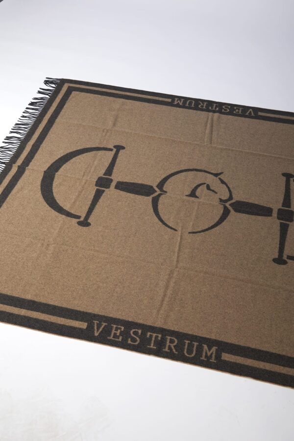 La coperta Montepulciano è realizzata in lana e cashmere. Il raffinato modello è impreziosito dal logo Vestrum in trama jacquard che si intreccia in un disegno equestre. Il morbido accessorio è decorativo e funzionale al contempo.
