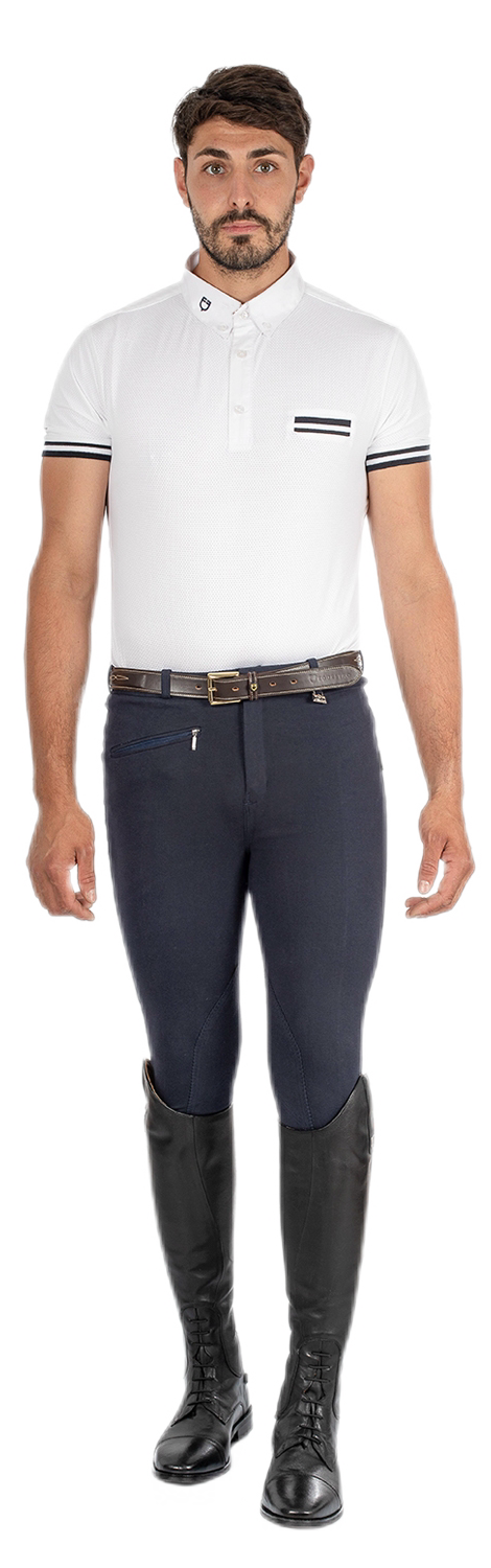 Pantalone slim fit da uomo in cotone bielastico e traspirante, con tasca frontale con chiusura a zip.