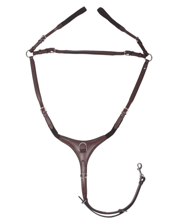 Il pettorale da caccia impedisce alla sella di scivolare all’indietro, ad esempio durante il salto. E’ completamente rivestito con morbida imbottitura per evitare sfregamenti, ampiamente regolabile ed รจ possibile montare una forchetta per la martingala.