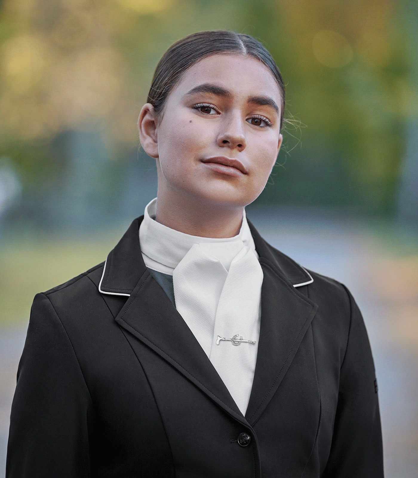 Elegante piqué a nido d’ ape con chiusura a strappo.
