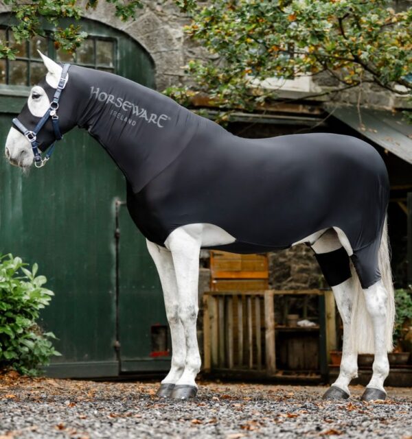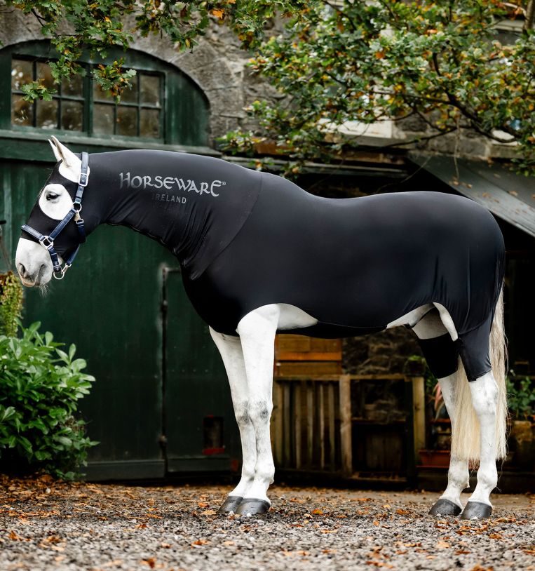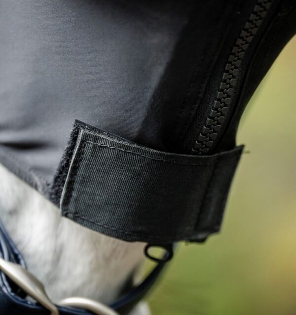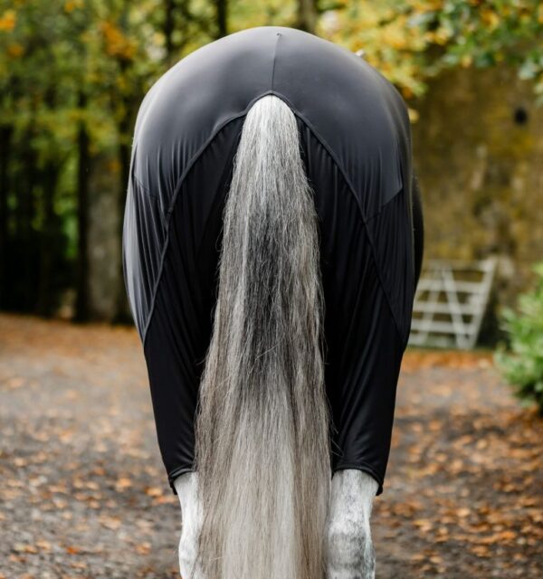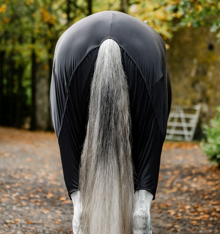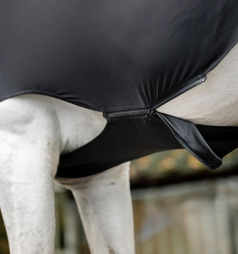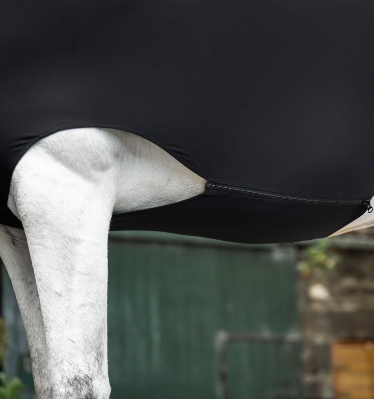 Realizzata in un mix traspirante di nylon e spandex con finitura antistatica, questo capo aiuta a proteggere il mantello dalla polvere e ridurre al minimo lo sfregamento. Una chiusura con cerniera a tutta lunghezza e una patta addominale la mantengono ferma, mentre gli archi delle gambe consentono movimenti naturali.