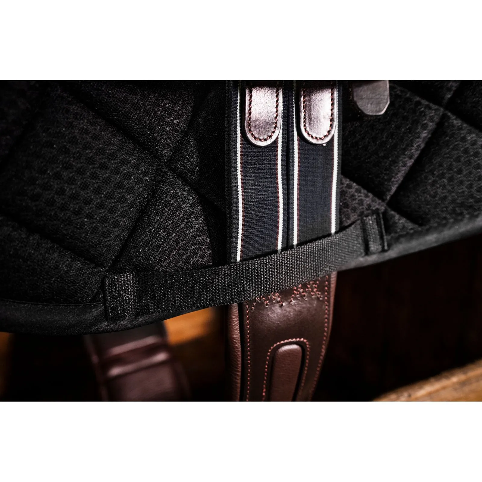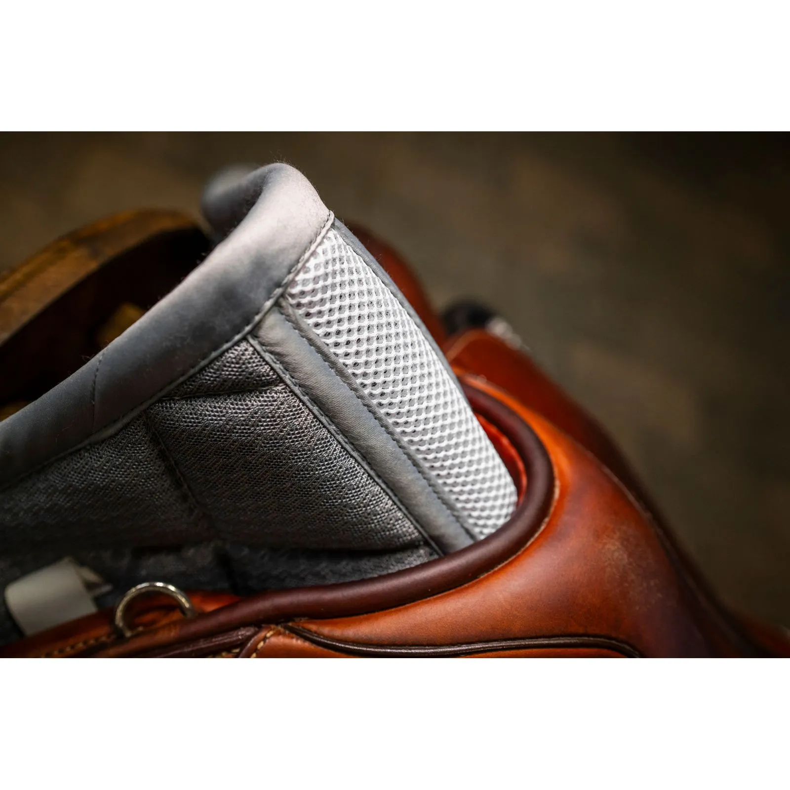 Questo sottosella presenta uno stile elegante e lussuoso con il raffinato marchio AA color canna di fucile. Finitura satinata sulla parte superiore per un look di alta qualitร e una rete 3D altamente traspirante nella parte inferiore per garantire la circolazione dell’aria. ร leggermente imbottito per il massimo comfort, con linguette ad anello a D e cinghia per il sottopancia per mantenere il cuscinetto saldamente in posizione.