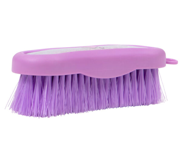 Spazzola con setole dai colori vivaci della collezione Gwenn appositamente dedicata alla pulizia della testa del tuo cavallo. Il manico è decorato con glitter ed una piccola testa di cavallo con due stelle.