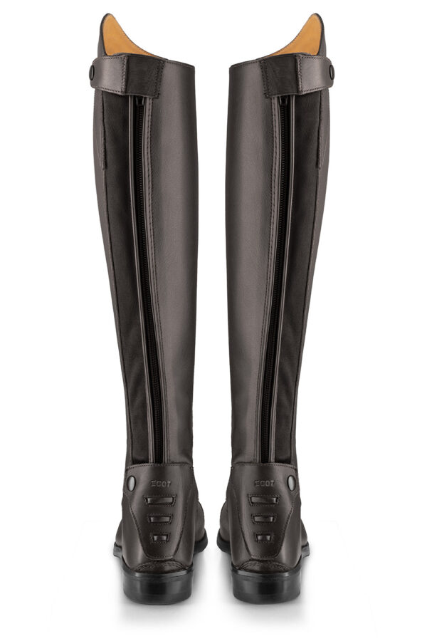 Il marchio EGO7 utilizza solamente materiali di altissimo pregio, con design italiano al 100%, con un rigidissimo controllo qualitร . Dettagli e finiture molto curate, come il porta sperone con 3 livelli differenti di regolazione, lโincavo frontale facilita il piegamento del piede, zip extra forte con bottoni automatici in ottone, il tallone รจ protetto da una linguetta imbottita extra, che agevola la calzata e protegge ance la cerniera.