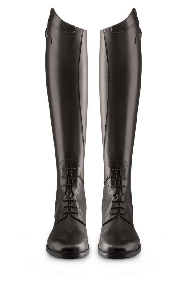 La pelle della fodera viene conciata e trattata senza coloranti e pigmenti, restando morbida, traspirante e durevole nel tempo, si scurisce naturalmente con lโuso dello stivale. La fascia posteriore รจ elastica, traspirante e confortevole, segue i movimenti del cavaliere con naturalezza.